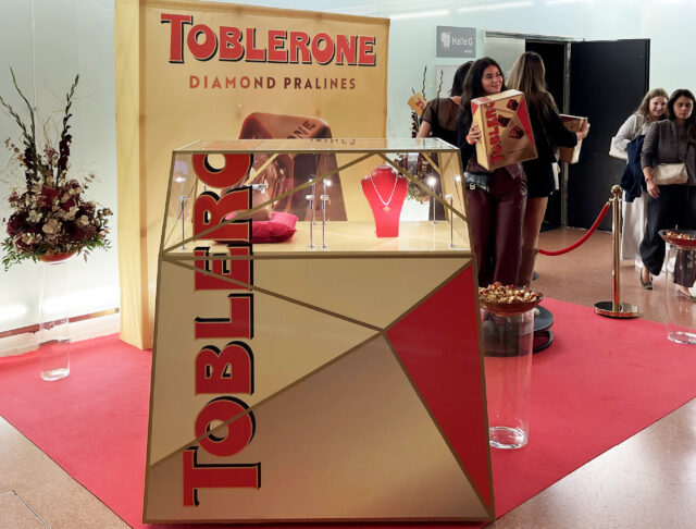 Trotz eines äußerst engen Zeitplans zählten die Vitrine und die Toblerone-Skulptur zu den visuellen Höhepunkten der Vienna Fashion Week – ihre Form, Oberfläche und Beleuchtung zogen Blicke auf sich, sorgten für Fotomomente und hinterließen bleibenden Eindruck.