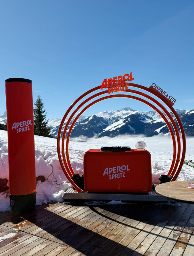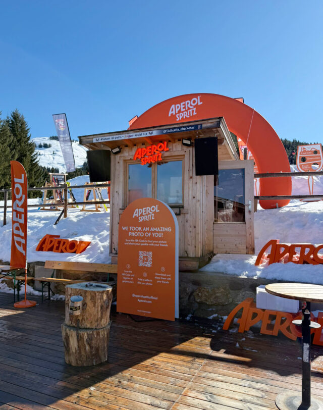 For Aperol, we developed and executed the brand experience for a multi-location activation across eight mountain sites in Austria, the Aperol Snow Beats Winter Tour 2025. The scope covered concept development, production, logistics, tour management and on-site execution, from initial planning through to build-up, operation, breakdown and storage. The objective was to create a consistent brand presence in alpine environments, while ensuring that every element could be transported, installed and operated within the constraints of winter conditions.