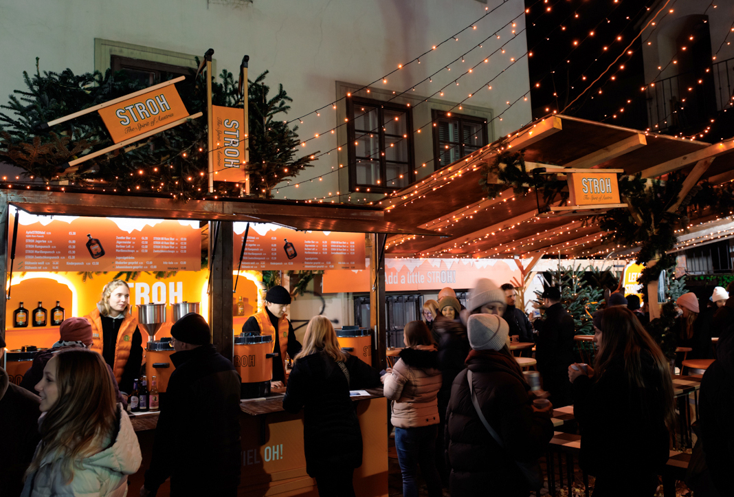 For STROH Rum, we delivered a branded Christmas market presence at Spittelberg Christmas Market in Vienna. The project was commissioned by Liquid Spirits, STROH’s distribution and local marketing partner in Austria.
